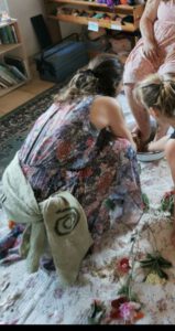 Ich habe mich neben Hausgeburtshebammen bewusst in jeder Schwangerschaft besonders begleiten lassen. Bei der 1. Schwangerschaft, eine Woche schamanische Begleitung, in der 2. Schwangerschaft mit Mutter- Kind- Bindungsanalyse und in der dritten Schwangerschaft mit einem Sacred Birth Kurs.
